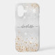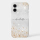 A faux silver metallic looking background, decorated with faux gold and silver glitter dust. Personalize and add your name. The name is written with a modern and trendy hand lettered style script with swashes.