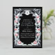 with vines and red roses, and silver accents against a black background. Matching Items in our shop for a complete party theme. Please note that the silver on the back of the invitation is NOT real foil and is printed in flat colors