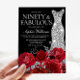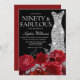 Silver Gown Red Roses 90th Birthday Party Black Invitation
