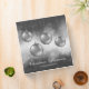 Destei's original illustration of silver grey colour festive Christmas baubles that have a snowflake pattern on them. The background is a beautiful grey bokeh. There are personalizable text areas on the front and on the spine.