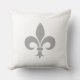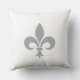 Elegant Silver grey Fleur de Lis on white colour Throw Pillow. Fleur de lis relates to royalty, virtue and harmony.
