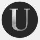 Silver Grey Foil Monogram U on Black Classic Round Sticker