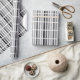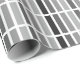 Geometric linear, rectangle, striped pattern of silver, grey and black hues.