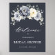 Silver Grey Ivory Floral Bridal Shower Welcome Po Poster