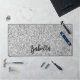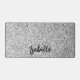 Personalize girly desk mat with your name and initial. Unique cool workspace for her office, room, work, workshop, gaming room. Cool, fun, elegant faux sparkly gift idea for her. Beautiful girly glamourous silver shiny glitters sparkles. Photo of silver sparkles not actual glitter!