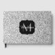 Silver grey light glitter sparkles Monogram Guest Book