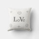 Silver Grey Love Text and Stars on White Throw Pil Throw Pillow
