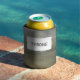 Silver grey metallic effect can cooler. Printed with your name or text of choice. Personalise by clicking CUSTOMISE, and enter your own name.