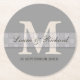 Silver Grey Monogram Bride Groom Names Round Paper Coaster