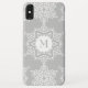 This Christmas phone case features a pretty snowflake pattern design with monogram on a silver grey background. Personalize it with an initial.