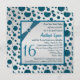 Silver Grey, Teal FAUX Glitter Polka Dot Sweet 16 Invitation