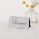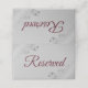 These elegant place cards are designed to let your guests know which seats are reserved for family and other special guests. They feature a grey background with frilly ornate silver faux foil floral accents in the corners, and burgundy or maroon lettering reading "reserved." Perfect for weddings or any other special occasion.