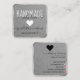 This simple, rustic, and cute business card is perfect for the home crafter, Etsy shop owner, or art fair creative. It features handwritten script font in black and white that says, "Handmade with love by (store name)," on top of a minimal and chic faux printed silver foil border and grey kraft paper background. It's modern, elegant, sweet, and unique; the perfect design for your customers.