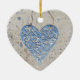 Heart shaped Christmas ornament features a silver filigree heart, photo’d on sandy beach. Add a name, date or message to personalize the design.