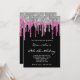 Silver Hot Pink Glitter Drips Black 18th Birthday Invitation