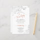 These wedding programs are elegant and tasteful, while still being budget friendly. The design features ornate silver grey faux foil lace with terracotta or coral orange and grey text on a white background. The typography features lacy script calligraphy, and there is room for details on the ceremony, the bridal party, and a short thank you.