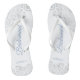 These elegant wedding flip flops are a great way to thank and recognize your bridesmaids, while giving their feet a rest after a long day. The beautiful design features an elegant design with silver grey lace frills on a white background and fancy dusty blue script lettering. The text reads Bridesmaid with her name below. Great way to thank her for being part of your special day!