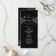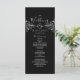 Elegant, modern, black and white wedding program with silver rope heart and vintage gilded floral lace.