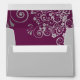 This beautiful grey wedding envelope is features a cassis purple, magenta, or berry coloured inside flap with silver grey floral curls and swirls. There is a printed return address on the back flap in fancy script lettering. The design is understated and simple, yet classic, chic and ornate. Perfect way to make your wedding invitations all the more special.