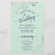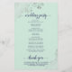 These wedding programs are elegant and tasteful, while still being budget friendly. The design features ornate silver grey faux foil lace with navy blue text on a pale mint green coloured background. The typography features lacy script calligraphy, and there is room for details on the ceremony, the bridal party, and a short thank you.