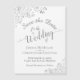 This beautiful magnetic cards will let your friends and family know to save the date for your upcoming wedding. The beautiful features a classic white background, gray script calligraphy, and ornate silver faux foil curls and swirls in the corners. Beautiful way to let your friends and family know about your upcoming wedding.