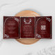 Silver Laurel Wreath Leaves Burgundy Red Wedding Tri-Fold Invitation