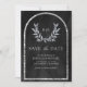 Silver Laurel Wreath Leaves Charcoal Grey Wedding Save The Date