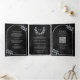 Silver Laurel Wreath Leaves Charcoal Grey Wedding Tri-Fold Invitation