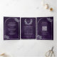 Silver Laurel Wreath Leaves Royal Purple Wedding Tri-Fold Invitation