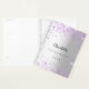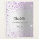 A faux silver looking background decorated with purple, violet faux glitter dust. Personalize and add a name, title and year.
