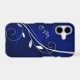 Here's an elegant phone case that features a modern silver leaf swirl against a deep royal blue gradient background. Your two letter monogram is at the left side in matching silver.