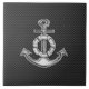 A silver chrome like lifesaver anchor design on a black carbon fibre style background decor. A racy modern nautical gift.