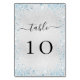 A faux silver background decorated with light blue faux glitter, sparkles. Personalize and add your table numbers. Add your numbers one by one.