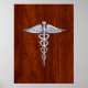 Silver Like Caduceus Medical Symbol Mahogany Print