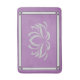 This bath mat features an art deco style border and a beautiful lotus flower... in silver on a lavender background.