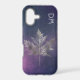 This pretty personalized phone case has a purple pink gradient background that is slightly distressed. At the center is a shiny silver maple leaf image. Your name or monogram is above it at the right side. You may change the font, if you'd like, by customizing.