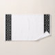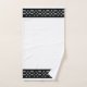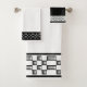 The borders on this unique and stylish towel set feature patterns with rectangles and squares that look like silver metal or chrome. The bath towel and hand towel are crisp white, and the washcloth is black with a white border. This modern industrial design will bring sophistication to any bathroom decor.