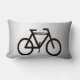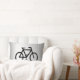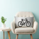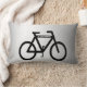 This decorative lumbar pillow features an abstract pattern of a black bicycle on a silver, grey and white metallic background.