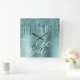 Silver Mint Brushed Foil Fancy Monogram Square Wall Clock