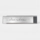 Modern Silver Glitter Faux Sparkle Glitter Metallic Foil Minimalist Business Name Plate with black lettered typography for the monogram. The Girly Business Name Plate can be customized with your name. Please contact the designer for customized matching items.