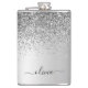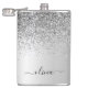 Silver Monogram Glitter Sparkle Girly Script Hip Flask