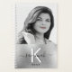 A faux silver looking background. Personalize and add your own photo, a name, monogram letter and a year. The name is written in black with a large modern hand lettered style script with swashes. The monogram letter in white. Perfect for school, work or organizing your personal/family life. To keep the swashes only delete the sample name, leave the spaces or emoji's in front and after the name