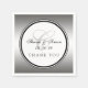 Printed Metallic Silver, Black and White, Grey Monogram Wedding Paper Napkins with Bride and Groom Names, Wedding Date and Thank You. By Elke Clarke ©. Available in our store at www.zazzle.com/ElegantMonogramgs. Customize with your married last name initial and use at your wedding reception dinner. Perfect for silver and black wedding colour scheme.