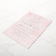 This elegant wedding invitation design features a script monogram initial encircled by a line art botanical wreath. The names appear in real silver foil script, with the rest of the text in classic serif font on a pale blush pink watercolor wash background. The watercolor wash is repeated on the back of the card.