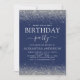 Silver Navy Blue Any Age Birthday Modern Glitter Invitation