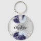 A faux silver looking background decorated with navy blue and light blue florals, flowers. Personalize and add your monogram initials and first name