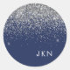 Silver Navy Blue Girly Glitter Sparkle Monogram Classic Round Sticker