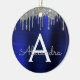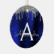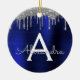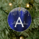 Silver Navy Blue Glitter Brushed Metal Monogram Ceramic Ornament