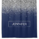 Silver and Navy Blue Faux Sparkle Glitter Brushed Metal Monogram Name Bathroom Shower Curtain. This makes the perfect sweet 16 birthday, wedding, bridal shower, anniversary, baby shower or bachelorette party gift for someone that loves glam luxury and chic styles.