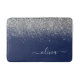 Silver Navy Blue Glitter Girly Monogram Name Bath Mat